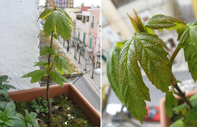 Qui sotto potete ammirare un piccolo acero piantato da seme (che ho rubato in una villetta pubblica)..